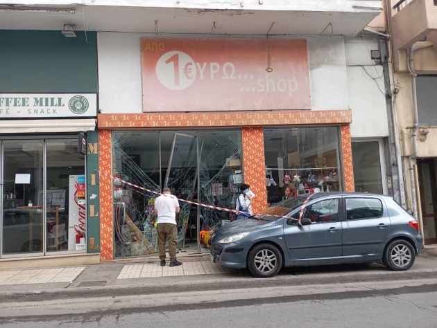 Αναστάτωση στο κέντρο του Ηρακλείου: Αυτοκίνητο «καρφώθηκε» σε βιτρίνα καταστήματος | Photos