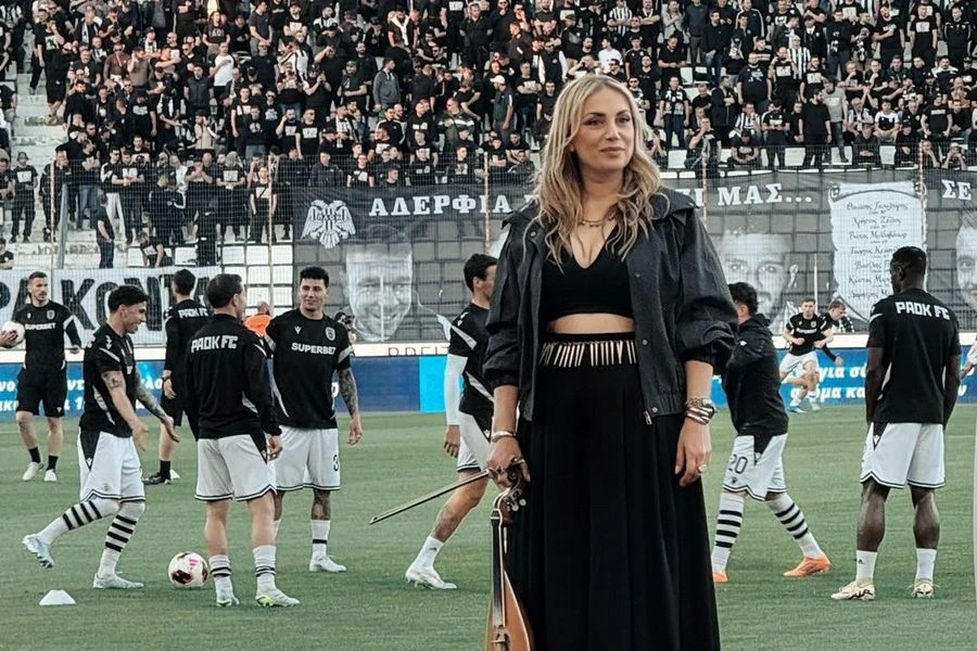 Στο Πανθεσσαλικό Στάδιο λίγο πριν την έναρξη του τελικού Κυπέλλου Ελλάδας μεταξύ ΠΑΟΚ-ΟΦΗ βρέθηκε η Γεωργία Νταγάκη με τη λύρα της.