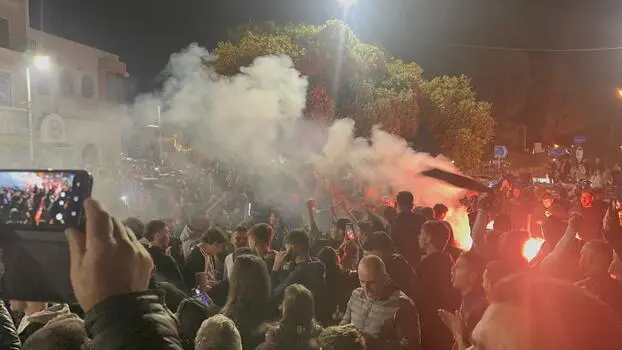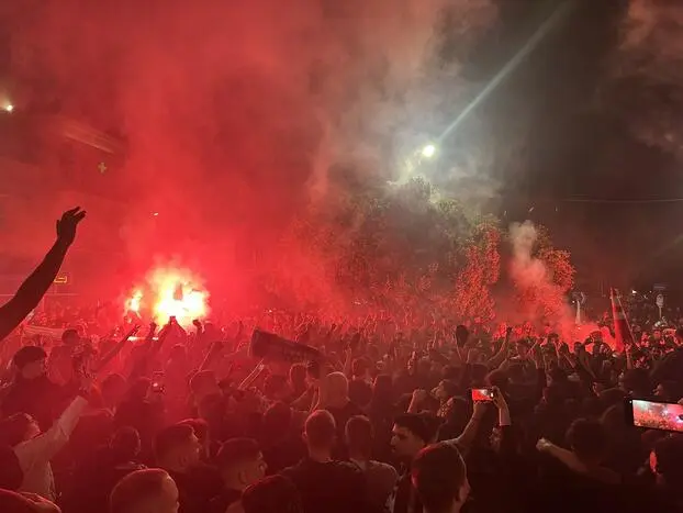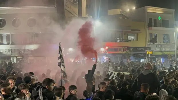 Τα καπνογόνα και τα πυροτεχνήματα έκαναν τη νύχτα μέρα στην πόλη, ενω το ραντεβού ανανεώθηκε για την υποδοχή των Κυπελλούχων στο αεροδρόμιο.