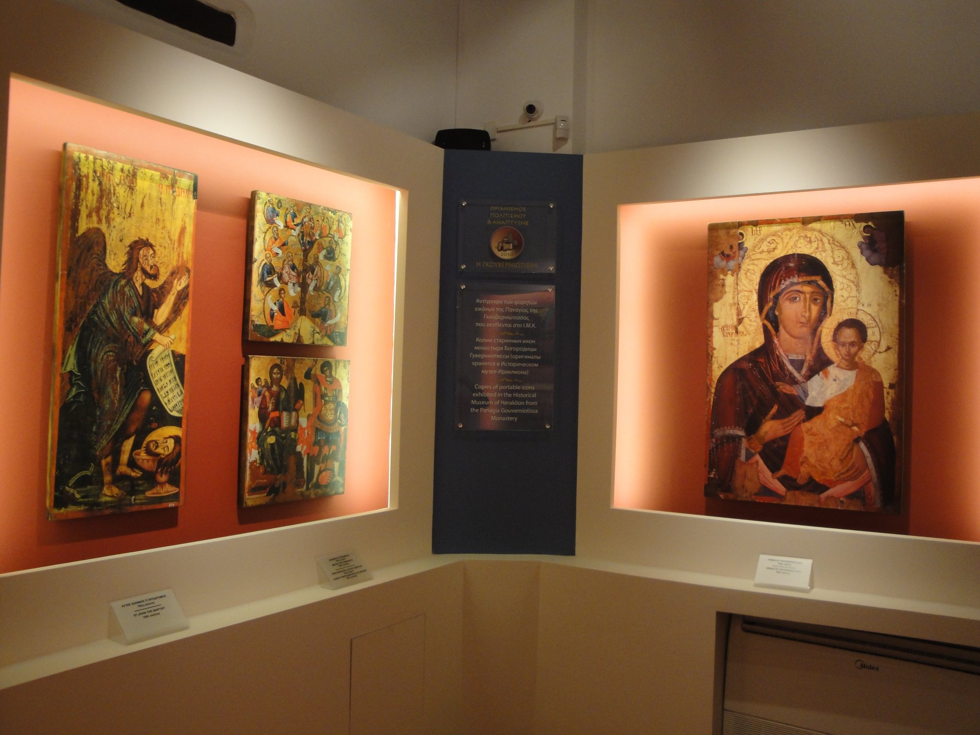 – Την Έκθεση Εκκλησιαστικών Κειμηλίων, όπου εκτίθενται τα ξυλόγλυπτα τέμπλα της Γκουβερνιώτισσας, ιερά ευαγγέλια, ο Κώδικας της Μονής, χειροποίητα ιερατικά άμφια, εκκλησιαστικά σκεύη (άγια ποτήρια, λόγχες, σταυροί) ενώ σε διπλανή αίθουσα φιλοξενούνται αντίγραφα των φορητών εικόνων της μονής που είναι έργα του 16ου αιώνα.
