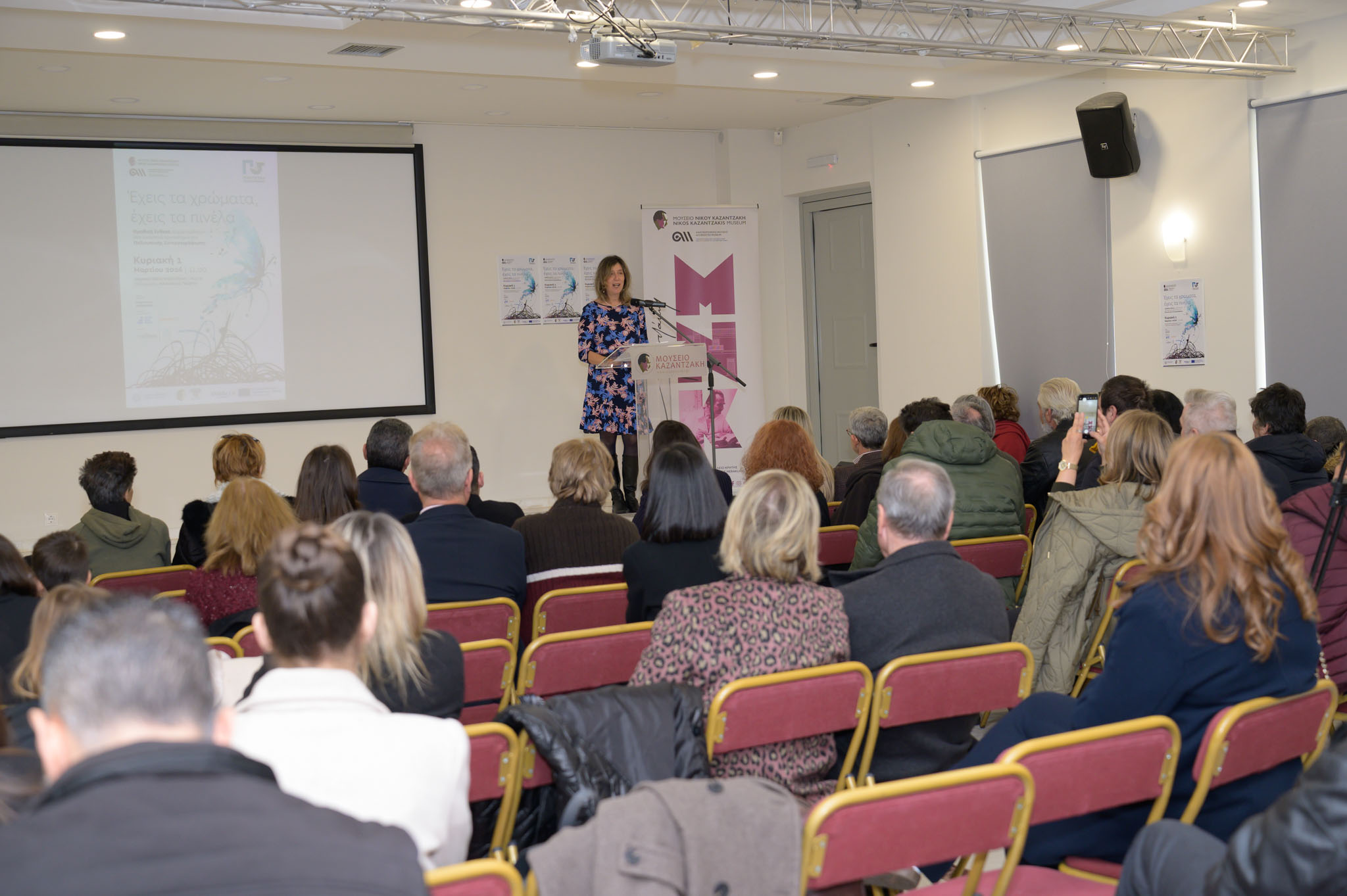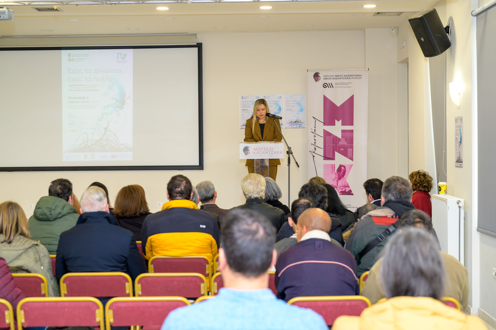 Στην εκδήλωση απηύθυναν χαιρετισμούς και τόνισαν την σπουδαιότητα της δράσης η κ. Μαργαρίτα Αλεξομανωλάκη, Προϊστάμενη Διεύθυνσης Παραστατικών Τεχνών και Κινηματογράφου του Υπουργείου Πολιτισμού, η κ. Γεωργία Μηλάκη, Αντιπεριφερειάρχης Πολιτισμού και Ισότητας της Περιφέρειας Κρήτης και Αντιπρόεδρος του Δ.Σ. του Μουσείου Νίκου Καζαντζάκη, η κ. Μαρία Μπάστα, Καθηγήτρια Ψυχιατρικής της Ιατρικής Σχολής του Πανεπιστημίου Κρήτης και Διευθύντρια Ψυχιατρικής Κλινικής Πα.Γ.Ν.Η., ο Πρόεδρος του Δ.Σ. του Μουσείου Νίκου Καζαντζάκη, κ. Ανδρέας Μεταξάς, και η Διευθύντρια του Μουσείου, κ. Μαριλένα Μηλαθιανάκη.