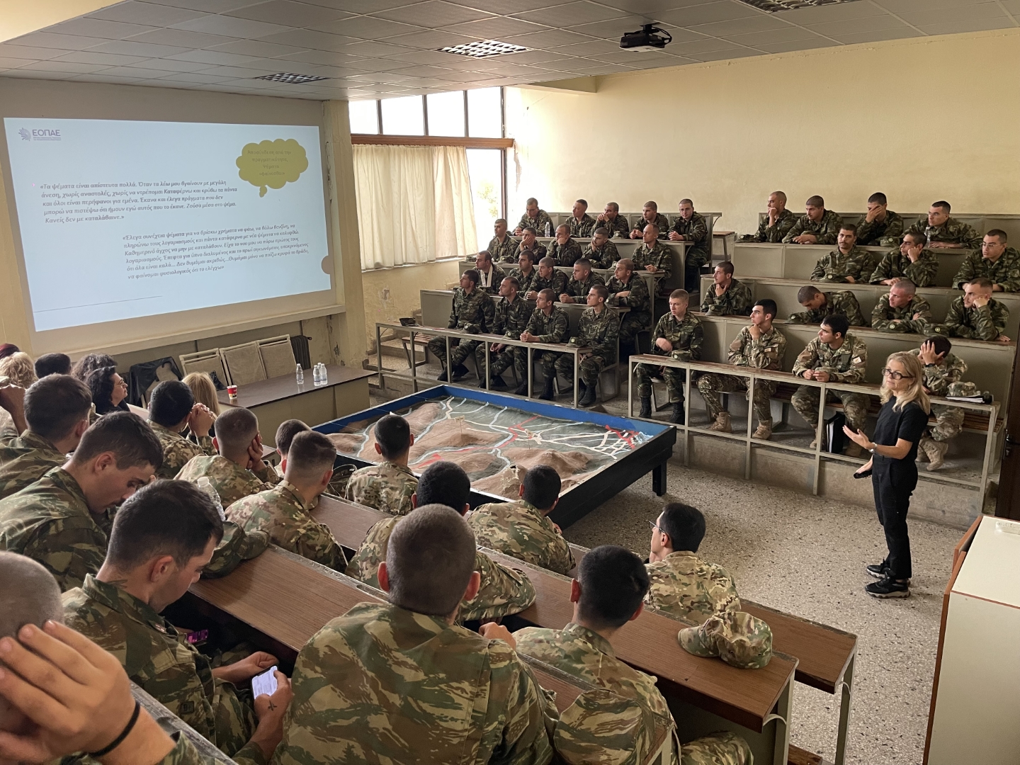 Με στόχο τη συμβολή σε μια ουσιαστική εμπειρία εκπαίδευσης και ευαισθητοποίησης των Σπουδαστών της Σχολής Εφέδρων Αξιωματικών Πεζικού, πραγματοποιήθηκε, πριν λίγες ημέρες, ενημερωτική εκδήλωση με τη συμμετοχή στελεχών από τις δομές του Εθνικού Οργανισμού Πρόληψης και ΑντιμετώπισηςΕξαρτήσεων (Ε.Ο.Π.Α.Ε.).