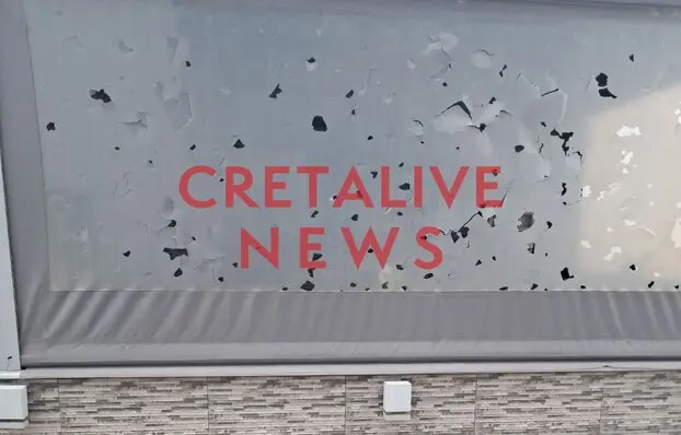 Είναι χαρακτηριστική η φωτογραφία που δείχνει τις ζημιές σε τέντα καταστήματος από το χαλάζι, θυμίζοντας σκηνικό… πολέμου!