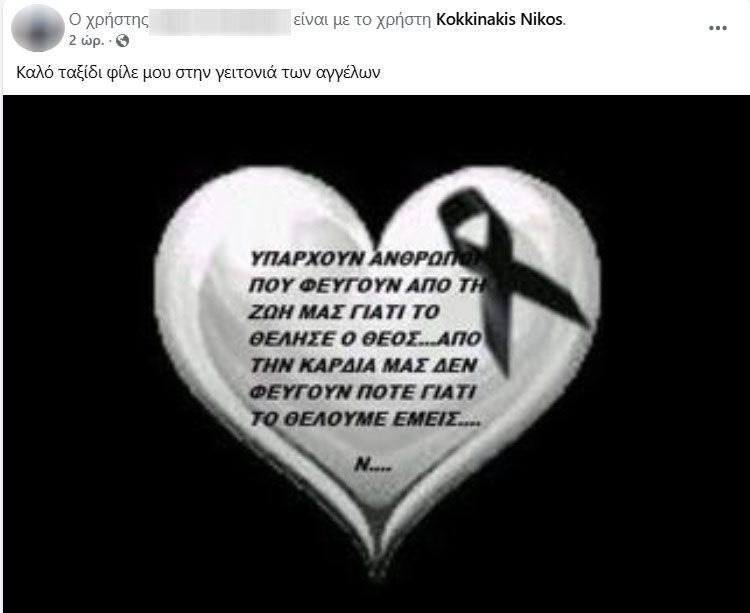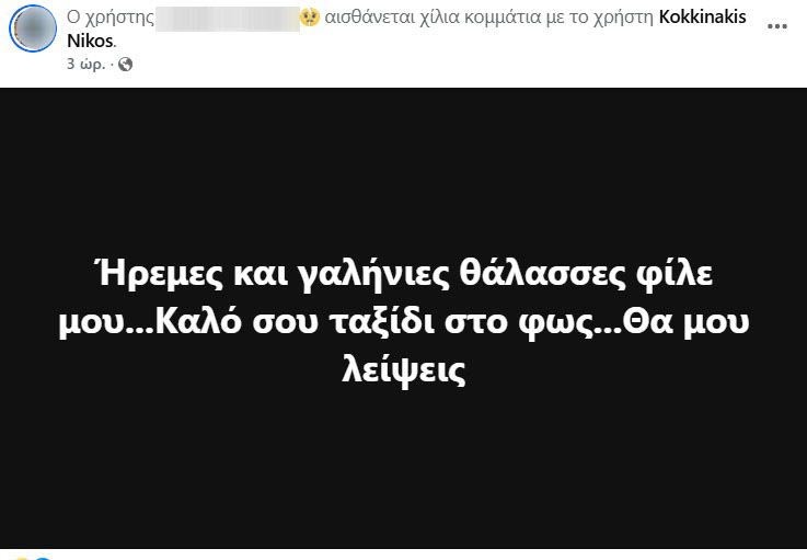 «Παραμονή των φώτων ο Θεός, σε ζήτησε κοντά του/ στην Άνω Πόλη να βρεθείς, μέσα στην αγκαλιά του», γράφει ένας φίλος του ενώ κάποιος άλλος αναφέρει σε ανάρτησή του: «Βαθιά θλίψη μας σκέπασε όλους. Έχουμε χάσει κι άλλους ανθρώπους, μα εσύ ήσουν κάτι το ξεχωριστό».