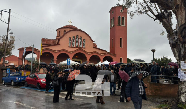 Με βαρύ κλίμα και έντονη συναισθηματική φόρτιση πραγματοποιήθηκε το μεσημέρι της Παρασκευής (24/4) η κηδεία της 43χρονης Ελευθερίας Γιακουμάκη στον Ιερό Ναό Αγίου Γεωργίου, στις Δαφνές Ηρακλείου, με την τοπική κοινωνία να παραμένει συγκλονισμένη από τη γυναικοκτονία που συγκλόνισε την Κρήτη.