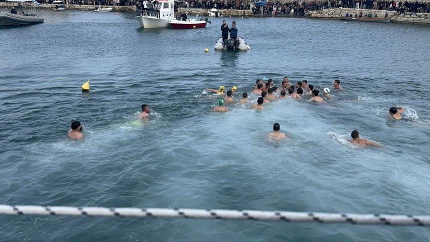 Παρά την παγωνιά και τους ισχυρούς ανέμους το λιμάνι ήταν κατάμεστο από κόσμο ενώ πολλοί ήταν οι θαρραλέοι βουτηχτές για να ανασύρουν τον Τίμιο Σταυρό.