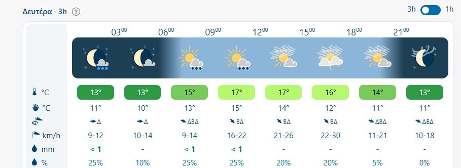 ΘΕΡΜΟΚΡΑΣΊΑ: Από 11 έως 19 βαθμούς Κελσίου.