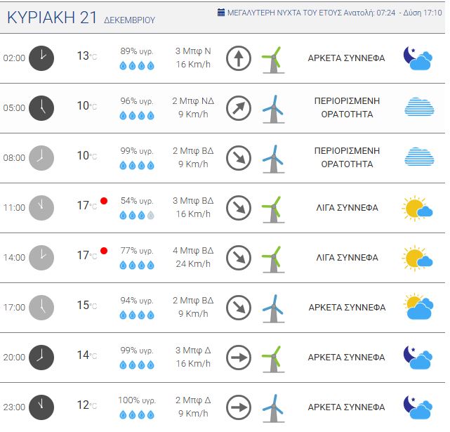 Ο καιρός στην Κρήτη την Κυριακή 21 Δεκεμβρίου