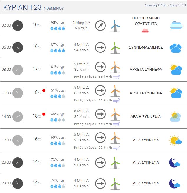 Ο καιρός στην Κρήτη την Κυριακή 23 Νοεμβρίου