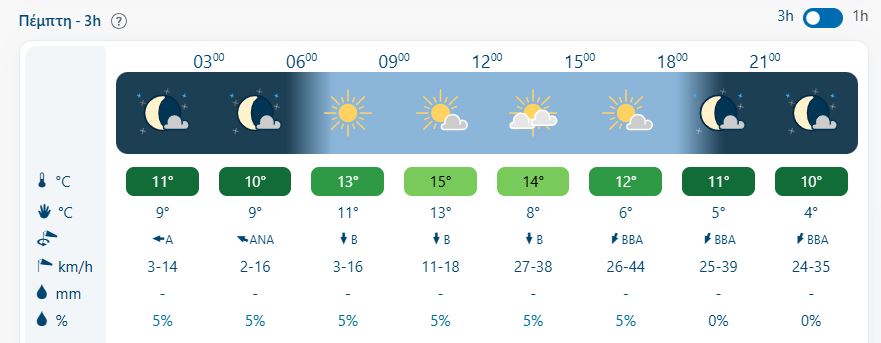 ΑΝΕΜΟΙ: Βόρειοι βορειοδυτικοί 4 με 6 και από το απόγευμα βόρειοι βορειοανατολικοί 5 με 7 μποφόρ.