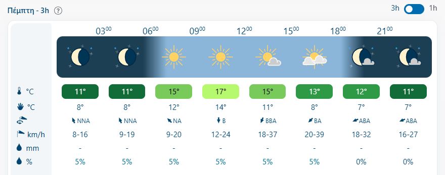 ΘΕΡΜΟΚΡΑΣΊΑ: Από 09 έως 17 και τοπικά στη νότια Κρήτη έως 18 βαθμούς Κελσίου.