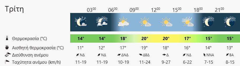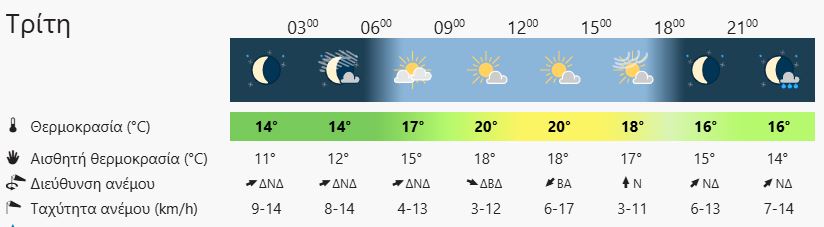 ΘΕΡΜΟΚΡΑΣΊΑ: Από 15 έως 22 βαθμούς Κελσίου.