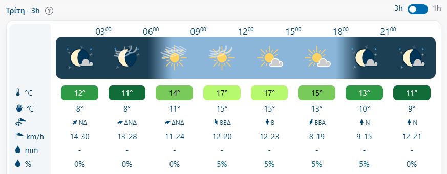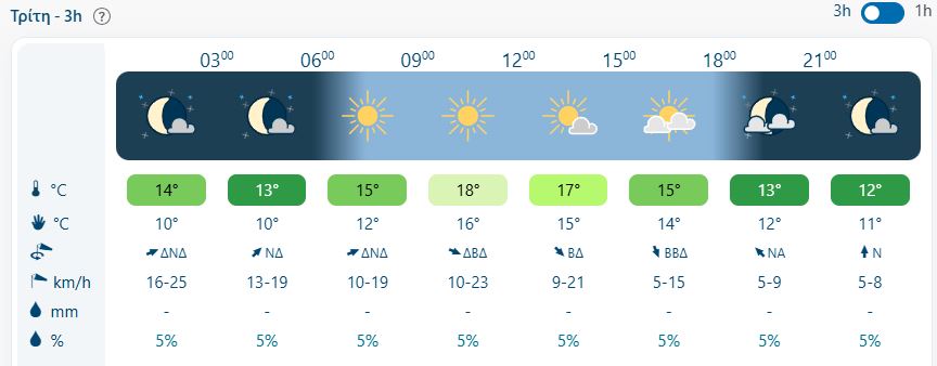 ΘΕΡΜΟΚΡΑΣΊΑ: Από 11 έως 17 και τοπικά τους 18 βαθμούς Κελσίου.