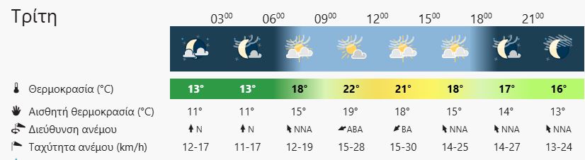 ΘΕΡΜΟΚΡΑΣΊΑ: Από 11 έως 20 με 21 βαθμούς Κελσίου.