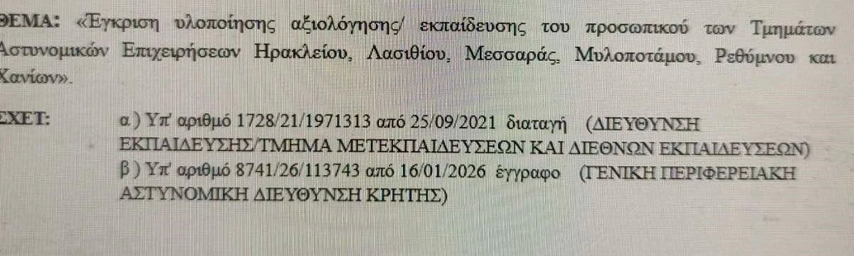 Όπως προκύπτει από τις ίδιες πληροφορίες, έως την 1η Μαρτίου θα πρέπει να έχουν περάσει από το στάδιο της εκπαίδευσης όλες οι ομάδες των ΤΑΕ στην Κρήτη.