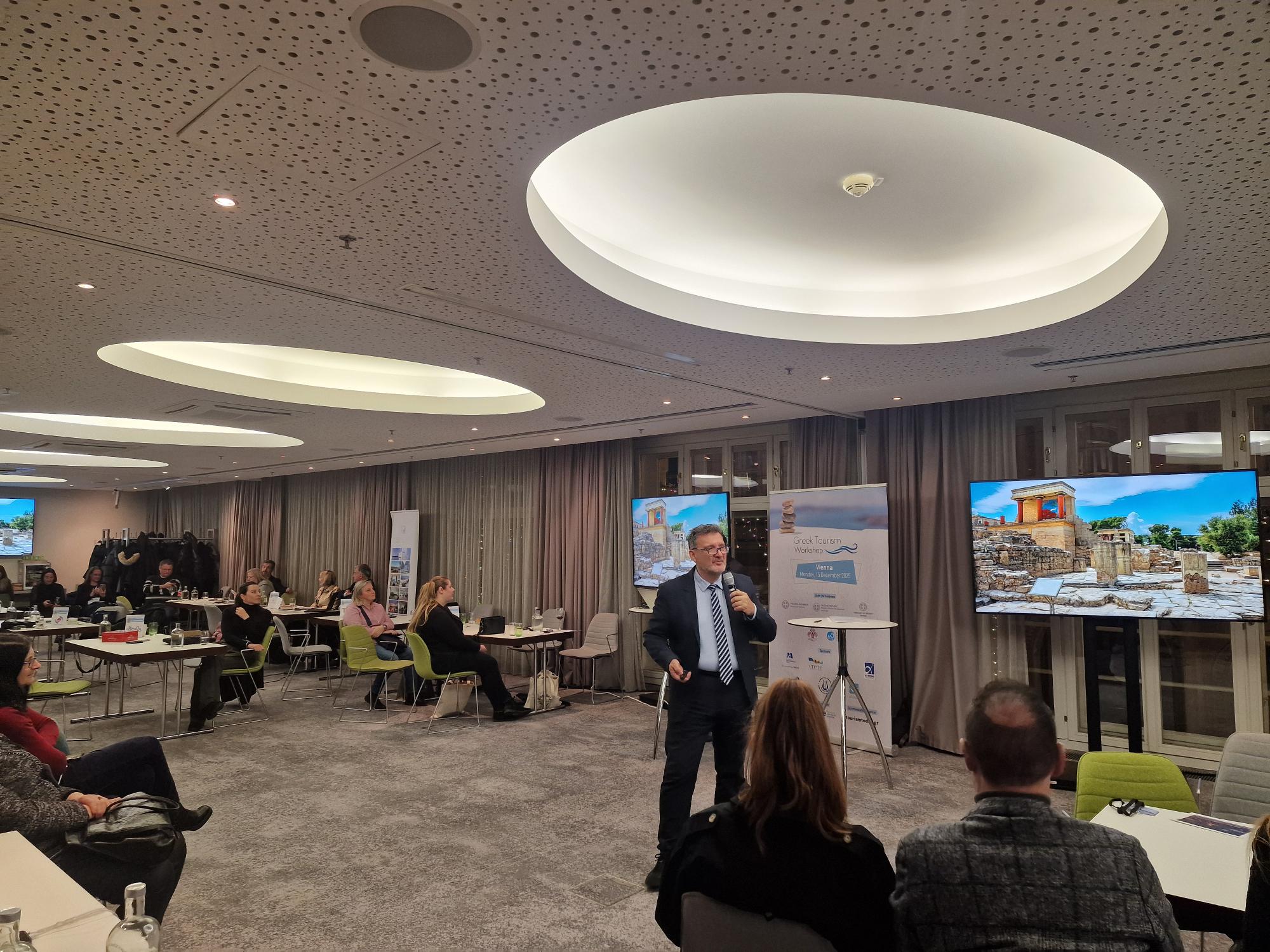 Εξαιρετικά επιτυχημένη ήταν η συμμετοχή της Περιφέρεια Κρήτης στην επαγγελματική εκδήλωση – workshop “Greek Tourism Workshop” που διοργανώθηκε στη Βιέννη στις 15 Δεκεμβρίου, στο πλαίσιο των δράσεων τουριστικής προβολής για το έτος 2025.