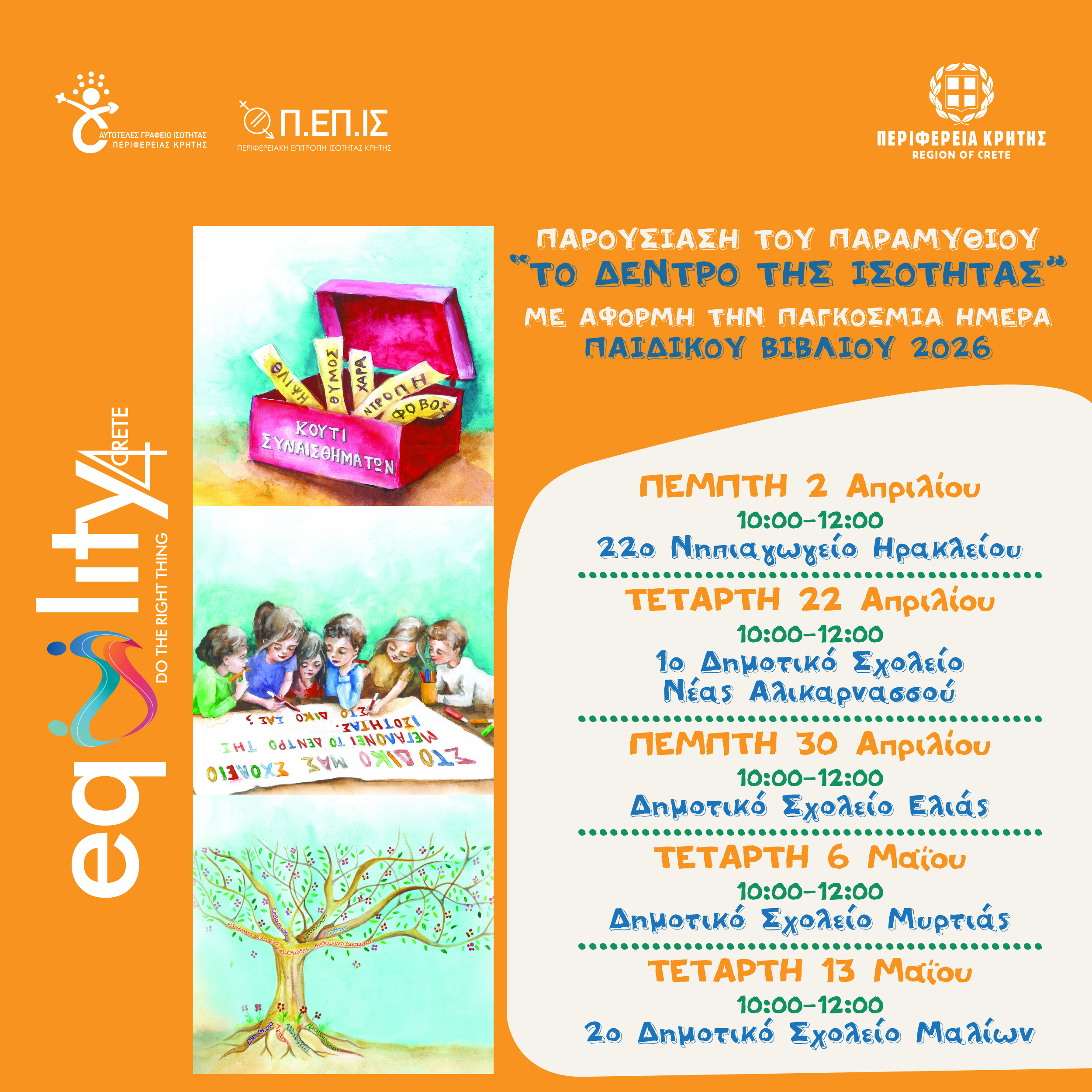 Βιωματικές δράσεις για την έμφυλη ισότητα μέσα από το παραμύθι «Το Δέντρο της Ισότητας» στην Περιφέρεια Κρήτης με αφορμή την Παγκόσμια Ημέρα